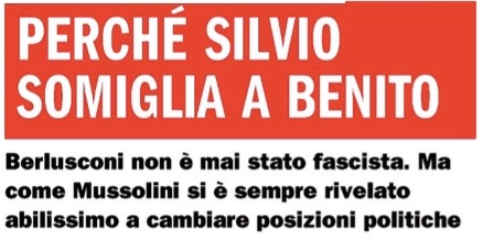 Quasi per liberarsi definitivamente delle polemiche seguite a quel suo endorsement per l’uomo di Arcore, dopo decenni di scontri durissimi, Scalfari ha usato un’altra tribuna mediatica a sua disposizione –una rubrica sull’Espresso, settimanale che di domenica viene venduto insieme con Repubblica– per paragonare Silvio Berlusconi a Benito Mussolini. Che non è proprio un complimento, specie con l’antifascismo di ritorno che si vive in Italia sull’onda dei fatti di Macerata, e non solo.