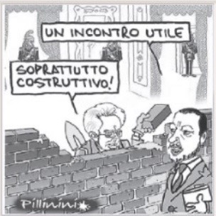 Costruttivo, è augurabile, non nel senso immaginato sulla Gazzetta del Mezzogiorno dal vignettista Nico Pillinini, che ha ritratto un inconfondibile Mattarella applicato nella costruzione, appunto, di un muro. Con Salvini naturalmente dall’altra parte.