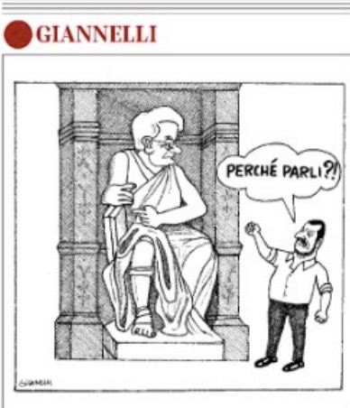 Ma, se esagerazione si vuole vedere in quel Di Maio prigioniero delle “brigate dello spread” come il povero Moro sequestrato e poi ucciso dalle brigate rosse più di quarant’anni fa, più che con la fantasia di Vauro bisognerebbe prendersela col modo di pensare, di parlare e di fare del vice presidente grillino del Consiglio. E di quanti, fuori e dentro il suo partito, lo apprezzano, lo difendono, lo giustificano e quant’altro.