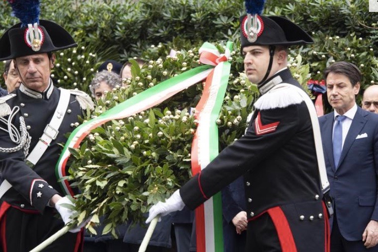 Quelle mascelle tirate di Giuseppe Conte su un corpo irrigidito, per quanto avvolto in un abito civile, e al solito elegante, anziché in una divisa magari felpata chiesta in prestito al suo vice presidente e ministro degli Interni, stracarico di mercanzie del genere, hanno dato la sensazione di un presidente del Consiglio davvero emozionato e preso dal suo ruolo davanti al monumento innalzato, e poi rinnovato, all’incrocio romano fra via Mario Fani e via Stresa.
