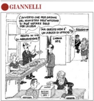 computer del medesimo Travaglio, come “un pugile suonato” dopo “il KO” elettorale di domenica, eppure sottoposto a “un imbarazzante plebiscito con un solo candidato”. Che è stato giustamente tradotto con una vignetta giornalistica sulla Gazzetta del Mezzogiorno in una scelta elettronica fra la conferma del capo del movimento e l’esclusione delle sue dimissioni.