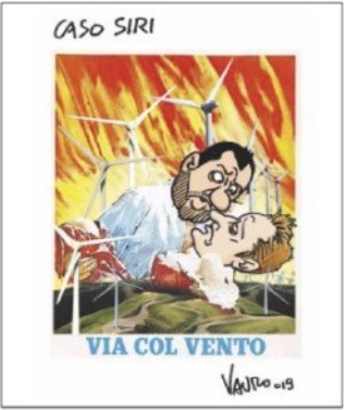 Nella galleria delle immagini prodotte dagli sviluppi della situazione politica, dopo che il presidente del Consiglio Giuseppe Conte ha iscritto nel libro dei licenziandi il sottosegretario leghista Armando Siri, indagato a Roma per corruzione, spicca la vignetta di Vauro Senesi sull’insospettabile Fatto Quotidiano. Dove la relazione politica fra i capi dei due partiti di governo, Luigi Di Maio e Matteo Salvini, in ordine rigorosamente alfabetico, già oggetto di murali da gossip, finisce tra le fiamme appiccate appunto da Conte col preannuncio della rimozione di Siri. Mancando la quale, visto che Salvini ha a sua volta annunciato di volere resistere, per quanto in Consiglio dei Ministri i grillini dispongano della maggioranza assoluta prontamente