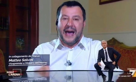 annunciato Salvini, collegato da Firenze allo studio televisivo di Massimo Giletti, de la 7, con immediata diagnosi più o meno sanitaria di una giornalista di Repubblica, presente e turbata dallo stato di “agitazione” del ministro, e del Fatto Quotidiano di Marco Travaglio. Che in un titolo di prima pagina ha dato a Salvini dell’uscito di testa.