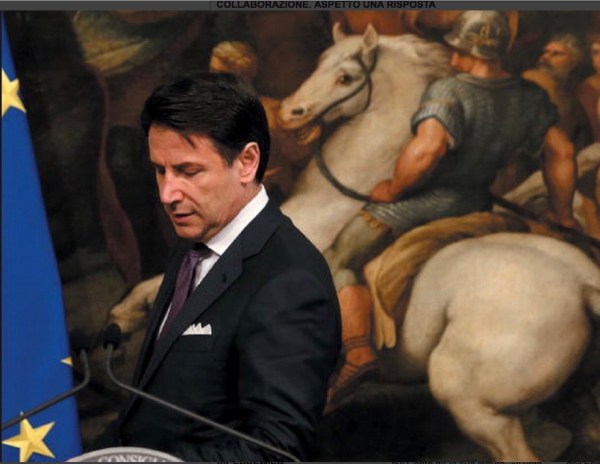 in trasferta nella sua Palermo, ha definito “ultimatum”, pur senza il requisito essenziale di una scadenza precisa, quello di Conte a Palazzo Chigi è stato un discorso pronunciato come se anche lui stesse a cavallo: al pari del guerriero nella tela di Giovan Battista Pace appesa alle sue spalle nella sala delle Galere, o dei Galeoni, nella sede del Governo, con la maiuscola.