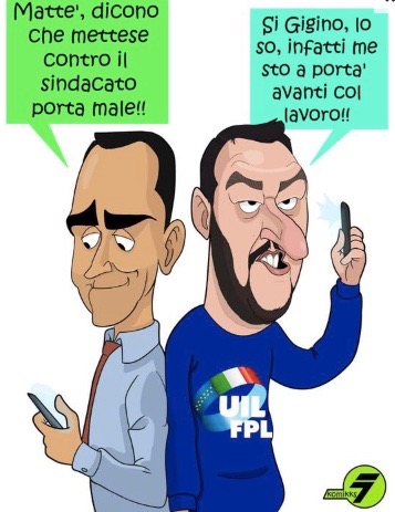 Infastidito da tanta solerzia, peraltro ripetuta perché di quello striscione è stato poi impedito l’uso anche in altro modo, non pensile, lo stesso Salvini, nella triplice veste di vice presidente del Consiglio, ministro dell’Interno e leader del partito italiano più votato nelle elezioni europee del 26 maggio scorso, si è affrettato a prenderne le distanze. Lo stesso ha fatto il vice presidente grillino del Consiglio e pluriministro Luigi Di Maio, che ha spiritosamente adottato nei suoi profili telematici la gigantesca vignetta che lo rappresentava preoccupato della sfortuna derivante al governo dalle proteste sindacali e tranquillizzato dalla garanzia di Salvini di “portarsi avanti col lavoro” ai fianchi, diciamo così, della Uil e associazioni affini.