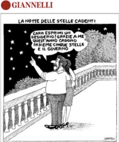 Emilio Giannelli ci ha scherzato sopra, con quella vignetta sulla prima pagina del Corriere della Sera che propone Matteo Salvini divertito romanticamente e politicamente, con la fidanzata Francesca Verdini, davanti allo spettacolo celeste delle cinque stelle e del governo cadenti nella notte di San Lorenzo, il diacono romano martirizzato sulla graticola e festeggiato oggi. Ma qualcuno, in questa estate del grande caldo e delle grandissime sorprese, avrà davvero pensato che il leader