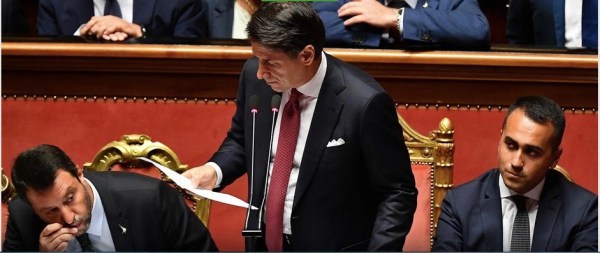 a lui le responsabilità della crisi virtualmente aperta da allora, con la riserva di riferire al Parlamento in tempi non immediati. Che sono stati poi definiti a Palazzo Madama da una maggioranza generalmente salutata, si vedrà se a torto a ragione, come anticipatrice di quella destinata a sostituire l’alleanza gialloverde.