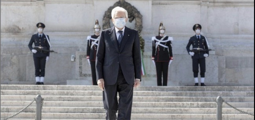 Quella mascherina che Sergio Mattarella ha indossato sull’altare della Patria dopo avere omaggiato la tomba del Milite Ignoto mentre le Frecce Tricolori svettavano in cielo