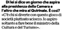 al Quirinale Conte, o facendo andare come garante proprio lui, Franceschini. Che ha però liquidato il sospetto di una sua partecipazione alla corsa al Colle come “gioco di società piuttosto sciocco”, bastandogli ed avanzandogli -ha assicurato- “l’aspirazione a fare bene il ministro della Cultura e del Turismo”. Spero a questo punto, per lui, che grillini e quant’altri non lo prendano in parola.