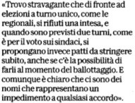 un negoziato eventualmente fra il primo e il secondo turno. E comunque avvertendo che “ci sono dei nomi che rappresentano un impedimento