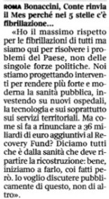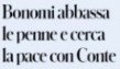 redazione dell’adorante Fatto Quotidiano. Dove in un richiamino di prima pagina è stato così riassunto il siparietto dell’assemblea confindustriale e dintorni: “Bonomi abbassa le penne e cerca la pace con Conte”, chissà se ottenendola o no.