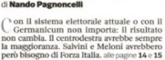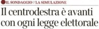 in vantaggio “con ogni legge elettorale”, come dice impietosamente un titolo in prima pagina. “Con il sistema elettorale attuale o con il Germanicum” -su cui Zingaretti sta trattando con i grillini fra un rinvio e l’altro dell’approdo della riforma nell’aula della Camera per il suo primo passaggio parlamentare- ”non importa: il risultato non cambia. Il centrodestra avrebbe sempre la maggioranza”.