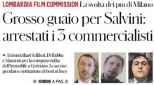 in prima pagina le foto quasi tessere dei tre commercialisti accusati di peculato e sottrazione di beni al fisco. L’affare, chiamiamolo così, ammonterebbe a 800 mila euro, incassati vendendo alla regione governata dal leghista Attilio Fontana la sede della Lombardia Film Commission, a Cormano, in provincia di Milano.