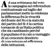 l’ampiezza e “vivacità”, contrapposta alla “staticità” populista del sì ai tagli dei seggi delle Camere concepiti come una misura finalmente punitiva della casta e di per sé salvifica.