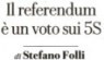 decisione dallo spirito antiparlamentarista e anti-politica dato alla loro riforma dai grillini. Che si sono così procurati anche questo titolo dell’editoriale di Stefano Folli su Repubblica: “Il referendum è un voto sui 5S”, la sigla ormai giornalistica dei pentastellati.