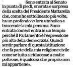della senatrice a vita Liliana Segre, della quale avranno qualche difficoltà nella redazione del Fatto Quotidiano a montare la foto in qualche altro manifesto di ricercati o indegni, complici dei “poteri forti” all’opera contro il governo. “Il Parlamento non è solo un costo” da tagliare, ha avvertito la senatrice, per risparmiare peraltro solo un caffè per ogni italiano neppure al giorno ma all’anno.