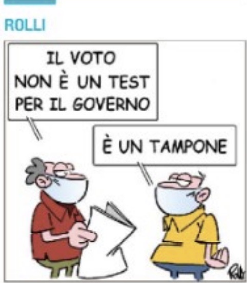 “Il voto non è un test per il governo. E’ un tampone”, si dice nella vignetta di Rolli sapendo bene quanto il tampone sia ansiogeno in questi tempi di coronavirus. L’ansia, per il governo e la maggioranza giallorossa che lo sostiene, è diventata panico in Puglia dopo un intervento di Alessandro Di Battista, il prediletto di Davide Casaleggio nella corsa alla guida del movimento grillino, contro il governatore uscente Michele Emiliano. A favore del quale Zingaretti pensava che potesse giocare il cosiddetto “voto utile” dei pentastellati. Per la cui candidata al vertice della regione si era speso con visite e comizi nei giorni scorsi Luigi Di Maio senza però attaccare Emiliano, che aveva perciò sperato nella possibilità di qualche aiuto dietro la facciata della concorrenza, in un gioco delle parti studiato per scongiurare la vittoria di Raffaele Fitto, del centrodestra.