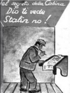 il “fronte popolare” dei socialisti e comunisti. L’elettore venne esortato, in particolare, a temere nella cabina elettorale più Dio che Stalin, la cui immagine veniva fuori peraltro -sempre sui manifesti e volantini elettorali- rovesciando quella di Giuseppe Garibaldi adottata dagli avversari dello scudo crociato.
