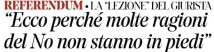 e presidente emerito della Corte Costituzionale Gustavo Zagrebelsky nella “lezione” agli elettori chiesta o comunque ospitata dal Fatto Quotidiano con un titolo in cui si dice che “non stanno in piedi molte ragioni del No”: non tutte quindi. E fra le ragioni del si ce ne sono di clamorosamente contraddittorie, vista l’avvertenza