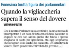 Non è minimamente saltata in mente ad un giornalista pur dell’esperienza di Vittorio Feltri che a motivare le assenze, quanto meno quelle ingiustificate, possano essere state legittime, ordinarissime, conosciutissime e antichissime ragioni politiche, per dissenso o protesta contro la gestione dei lavori d’aula, troppo spesso condizionata dalle pressioni, dagli errori, dalle imprudenze del governo. Che in questa occasione, per esempio, avrebbe dovuto risparmiarsi la fretta che mi risulta essere stata “suggerita” a ripetere dopo un’ora, nell’applicazione letterale del regolamento, la votazione fallita in condizioni difficilmente rimediabili in poco tempo, anche se nella seconda votazione -va detto pure questo- sono mancati solo otto deputati per garantire le presenze necessarie alla legittimità del risultato. Tanto strumentali possono essere state le assenze quanto strumentali gli applausi delle opposizioni all’accaduto.