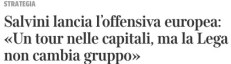 Anche se è tornato a dire davanti ai deputati della Lega eletti a Strasburgo, chiamati a Roma non certamente in gita turistica, che è l’Europa a “cambiare come volevamo noi”, cioè in senso solidaristico e più rispettoso delle diversità dei paesi che compongono l’Unione, Matteo Salvini si è mosso