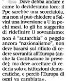 Quasi a conferma della fiducia di Pera, al di là e al di fuori dell’incontro con gli eurodeputati del Carroccio, Salvini ha smentito come più visibilmente non poteva un dossier uscito dal loro gruppo il 7 ottobre scorso contro i fondi europei per la ripresa. Che sarebbero una mezza trappola per l’Italia condizionandone questo e i governi futuri, fossero pure di centrodestra. Egli ha fatto astenere i leghisti del Parlamento italiano, insieme con le altre componenti del centrodestra, sulla risoluzione d’indirizzo per l’uso dei fondi europei della ripresa destinati al nostro Paese, “completamente diversi” secondo lui dalla “logica del fondo salva-Stati” noto con l’acronimo del Meccanismo Europeo di Stabilità (Mes). Di cui il leader diffida, al pari di quasi tutti i grillini, pur consentendoci di accedere subito a più di 35 miliardi di euro ad un tasso d’interesse vicino allo zero per il potenziamento del servizio sanitario e del suo indotto, messi a dura prova dalla pandemia
