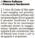 La seconda notizia, appresa leggendo le cronache politiche del Corriere della Sera, è la perdita di consensi