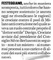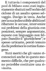 “i tanti meriti” disconosciuti, in particolare, da quanti “festeggiano anche in maniera scomposta” il pensionamento del famoso “dottor Sottile” del pool giudiziario di Milano, protagonista della stagione “anti corruzione” nota come quella di “Mani pulite”.