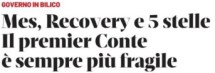 “Il premier Conte è sempre più fragile”, ha fatto eco, sempre su tutta la prima pagina, il quotidiano Domani fondato