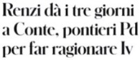 Il Conte di Palazzo Chigi che Mario Makkox Dambrosio nella vignetta di copertina del Foglio ci propone con i brividi alla ricerca del suo portavoce viene invece proposto ai lettori di Repubblica come un uomo finalmente disposto a cedere a Matteo Renzi sul rovesciamento del piano d’impiego dei fondi europei per la ripresa e sulla rinuncia alla gestione diretta, senza delega, dei servizi segreti. E persino pronto, se già non impegnato, a trattare l’odiato rimpasto ministeriale, che potrebbe portare Renzi -secondo alcune indiscrezioni- alla Farnesina, al posto del grillino Luigi Di Maio spostato all’Interno, al posto della “tecnica” Luciana Lamorgese.