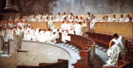 Grillo, avvolto metaforicamente nelle tuniche dei senatori dell’antica Roma dipinti nel 1880 da Cesare Maccari in un affresco esposto in una sala di Palazzo Madama, non pensa minimamente che qualcuno