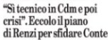 i giornali. Che è quello di fare uscire dal contenzioso fra Conte e Renzi, o viceversa, la materia dalla quale tutto in fondo è partito, almeno a parole: il cosiddetto Recovery plan, cioè il piano d’utilizzo degli ingenti fondi europei della ripresa destinati all’Italia.