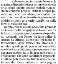 quant’altro, non credo proprio che sia stato confortante a Palazzo Chigi leggere sul Corriere della