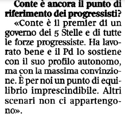 Consiglio ha ugualmente proposto al partito di Zingaretti di assumere in un nuovo governo un ruolo “fondamentale”, diventato “centrale” nel titolo dell’intervista al Corriere della Sera.