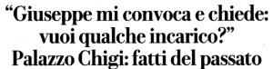 in ufficio e fatto accomodare “nel salotto, sul divano, forse per creare subito un clima più informale”, si vede “guardare in faccia” e chiedere subito, “per entrare -dice lo stesso Conte- nel cuore del nostro incontro”, se vuole “qualche incarico”. E provate a immaginare che cosa verrebbe ridetto e gridato contro il Cavaliere di Arcore.