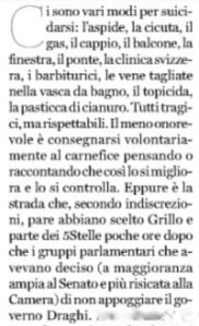 contro “il suicidio assistito” degli amici in un editoriale che gli è venuto anche un pò sgrammaticato, con un “che” di troppo d’altronde comprensibile per lo stato d’animo