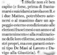 dell’arte del presepe di via San Gregorio Armeno, nella Napoli di Fico. Per Conte il povero Travaglio aveva progetti più ambiziosi, e se ne sarà sentito tradito non meno che da Grillo, Vito Crimi, Luigi Di Maio e altri ancora votatisi ormai al “suicidio assistito”, che peraltro non mi sembra estraneo alla sensibilità del direttore del giornale sicuramente fra i più letti sotto le cinque stelle.
