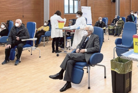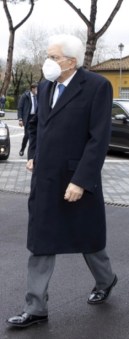 davanti alla porta del suo studio dopo le consultazioni per la crisi di governo, mentre spiega sobriamente e drammaticamente le ragioni del no allo scioglimento anticipato delle Camere e conseguenti elezioni a pandemia ancora in corso e, infine, almeno per ora, all’arrivo all’ospedale Spallanzani di Roma e poi seduto, in attesa come altri pazienti della sua età del proprio turno per la vaccinazione anti-Covid.
