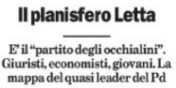 però rispondere dal padre che Enrico Letta “ha tanta femminilità dentro…tanta, credimi, tantissima”. Quelli del Foglio invece sono stati attratti dalle lenti dell’interessato per definire “il partito degli occhialini” quello che