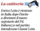Non poteva naturalmente mancare in questo minestrone di giudizi, valutazioni e quant’altro i riferimenti familiari ad un altro Letta: lo zio Gianni, grande consigliere e ambasciatore di Silvio Berlusconi. Se n’è ricordato il solito Fatto Quotidiano dedicandogli “la cattiveria” di giornata sulla