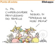 definita “sorprendente” su Repubblica da Stefano Folli, in qualche modo in sintonia con Laura Pellegrini. Che nella sua vignetta firmata, al solito, Ellekappa fa capire sullo stesso giornale che avrebbe preferito morire prima di dovere sentir dire e vedere che il Pd è “l’interlocutore privilegiato dei 5Stelle”, come del resto pensava anche Nicola Zingaretti, il predecessore dell’attuale segretario chissà perché, a questo punto, dimessosi per la “vergogna” procuratagli dal poltronismo delle correnti. Alle quali poteva bastare e avanzare che egli cominciasse davvero a prescrivere e fare rispettare una certa dieta, senza fare tanto chiasso e aggravare con la sua protesta l’immagine del partito.
