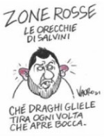 questa gravità, per esempio, la nave ammiraglia della flotta di carta stampata anti-casta, anti-privilegi, anti-abusi eccetera, eccetera. Mi riferisco naturalmente al Fatto Quotidiano, che ha preferito continuare a portare, o a mantenere, come preferite, in prima pagina come un’ossessione i viaggi all’estero di Matteo Renzi o le sparate dell’altro Matteo, cioè Salvini. Cui, in un tratto di sorprendente generosità, ha riconosciuto a Mario Draghi in una vignetta il merito di avere tirato le orecchie facendogliele diventare rosse, come fece a suo tempo l’intrepido Giuseppe Conte, quando lo aveva quasi sopra di sé come vice presidente del Consiglio e ministro dell’Interno.