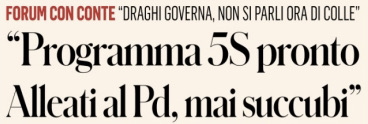 Il senso della lunga intervista è stato così tradotto dal giornale nel titolo di apertura: “Forum con Conte- “Draghi governa, non si parli ora di Colle”- “Programma 5S pronto. Alleati al Pd, mai succubi”. Nel sommario si aggiunge il termine di poco più di quindici giorni che l’ex presidente del Consiglio si è dato per diffondere il nuovo programma del movimento affidatogli da Beppe Grillo e si forniscono, fra virgolette, altri particolari delle idee e degli umori dell’intervistato: “Sostengo il governo, però niente uomini della provvidenza, né cedimenti sulla giustizia”. Renzi? “Sullo 007 risponda. Magari lo reincontro in qualche autogrill…”, come accadde sotto Natale al dirigente dei servizi segreti Marco Mancini ripreso da un presunto telefonino galeotto di una signora disgraziatamente -per lo stesso Mancini e per Renzi- fedele della trasmissione televisiva di Rai 3 Report condotta da Sigfrido Ranucci. Col quale Renzi, per difendersi dal sospetto di avere complottato con Mancini contro Conte ancora a Palazzo Chigi, ha ingaggiato una partita anche giudiziaria dagli sviluppi imprevedibili.