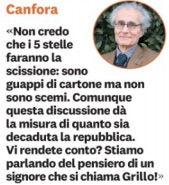 Rassegniamoci. Andrà avanti per le lunghe questa storia dei grillini in marcia verso la scissione. Che Il Foglio legge come “una guerra di nervi” condividendo forse la previsione di Luciano Canfora, sul Riformista, che non si arriverà a tanto un po’ perché sotto le cinque stelle “non sono scemi” e un po’ perché sono solo “guappi di cartone”, comunque responsabili di un degrado del dibattito politico stando tutti a parlare “del pensiero di un signore che si chiama Grillo”. Attorno ai cui umori o malumori in effetti ha vissuto buona metà della legislatura uscita dalle urne del 2018, fino a quando il presidente della Repubblica non ha mandato a Palazzo Chigi Mario Draghi. Che con la sua larga maggioranza di emergenza riesce a tenere il Paese in sicurezza.