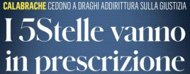 Quello di Libero sulla riforma del processo penale uscita dal Consiglio dei Ministri con le modifiche da apportare al disegno di legge all’esame della Camera è naturalmente esagerato, più un desiderio perverso che altro: “Draghi arresta Bonafede e Travaglio”. Ma quest’ultimo, direttore del Fatto Quotidiano, ha mostrato di sentirsi davvero un detenuto fuori si sé per la rabbia immaginando sulla prima pagina del suo giornale Beppe Grillo in persona, il ministro degli Esteri Luigi Di Maio e quello dell’Agricoltura Stefano Patuanelli, capo della delegazione pentastellata al governo, adoranti e grati davanti ad un presidente del Consiglio che li ha messi in ginocchio. E mandato “in prescrizione i 5 Stelle” con quello che potrebbe essere chiamato il lodo Cartabia, dal nome della ministra della Giustizia e già presidente della Corte Costituzionale. “Calabrache, cedono a Draghi addirittura sulla giustizia”, ha gridato Marco Travaglio sul suo giornale contro i grillini, in concorrenza con le proteste tweet del solito Alessandro Di Battista in viaggio consolatorio o rigeneratore in Bolivia.