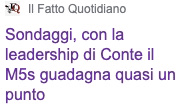 Ma per fortuna di Conte c’è la 7 di Urbano Cairo con i sondaggi elettorali affidati a Swg, nel cui ultimo si è buttato come un pesce il sito on line del Fatto Quotidiano -e chi sennò?- per annunciare la grande, grandissima notizia che vendica subito Conte dai suoi detrattori. Fra il 2 e il 30 agosto da presidente digitalizzato del MoVimento 5 Stelle Conte gli ha procurato “quasi un punto” in più di voti: esattamente lo 0,8 per cento, dal 15,5 al 16,3. E pazienza se si tratta pur sempre di più della metà in meno dei voti grillini nelle elezioni politiche del 2018.