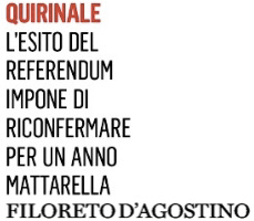 Cosa si dovrebbe fare allora alla scadenza del mandato di Mattarella, vista la delegittimazione delle Camere attuali sancita con tanto di referendum confermativo? Semplice, anzi semplicissimo: “riconfermare per un anno” il presidente uscente, pur fingendo di confermarlo per altri sette. Un anno basterebbe, e avanzerebbe, per consentire al Parlamento di eleggere nel 2023 un Capo dello Stato pienamente legittimato anche lui. E’ l’uovo di Colombo, prima ancora che di D’Agostino. Resta solo da convincere Mattarella, che mi risulta già impegnato a cercare una casa in affitto dove trasferirsi a febbraio dall’alloggio del Quirinale, possibilmente vicino a quella della figlia. Ma bisognerà forse convincere anche il presidente in pectore dei grillini Giuseppe Conte, mezzo tentato da una promozione/rimozione di Draghi. E forse più d’accordo col Fatto Quotidiano di oggi, che ha già preso le distanze da D’Agostino pubblicando, sempre defilato, un articolo di segno opposto della non pur titolata Silvia Truzzi. Nel cui titolo si legge addirittura in rosso: “Balle”. E si aggiunge: “Il bis di Mattarella sembra inevitabile, ma non è affatto così”. Il Presidente uscente insomma può continuare a cercare casa per godersi il famoso riposo di cui lui parlò nei mesi scorsi ad una scolaresca, giustificato dalla fatica obiettivamente costatagli questa anomala legislatura in corso, comprensiva di follie politiche e pandemia.