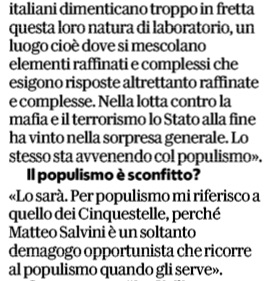 In particolare, prendendosela con un “veterano della missione italiana”, avventuratosi a dire al Giornale della famiglia Berlusconi che “i nostri insegnamenti sono stati efficaci”, ha commentato: “Gli abbiamo insegnato a scappare”. Il direttore del Fatto Quotidiano merita di ricevere per ritorsione, diciamo così, ciò che lui ogni lunedì dice ad un po’ di malcapitati della settimana precedente non sfuggiti alla sua attenzione in una rubrica editoriale sotto questo titolo: “Ma mi faccia il piacere”.