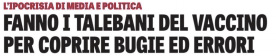 Come un partito in cerca di voti, anche un giornale in cerca evidentemente di lettori ha voluto oggi lisciare il pelo ai dimostranti mobilitati contro le vaccinazioni, i green pass e contorni antipandemici minacciando blocchi ferroviari e quant’altro. Si tratta della Verità, che ha sparato su tutta la sua prima pagina ciò che neppure Matteo Salvini e Giorgia Meloni si sono spinti a dire nelle loro azioni, rispettivamente, di contenimento e di contrasto alle vaccinazioni. Eccone il titolo: “Fanno i talebani del vaccino per coprire bugie ed errori”. Io, quindi, che mi sono vaccinato con convinzione e vorrei che tutti lo facessero per mettersi e metterci in sicurezza, risparmiandosi e risparmiandoci la morte da virus o da complicanze, sarei un talebano, “ipocrita” come “media e politica” indicati in rosso dal giornale diretto dal mio amico Maurizio Belpietro. Al quale dico con franchezza che stavolta si è fatto prendere troppo la mano dalla vis polemica, o da quello che il nostro comune amico Giuliano Ferrara ha definito sul Foglio “bisogno dell’antagonismo ideologico” cercando di spiegarsi e spiegare ciò che sta accadendo sulle piazze, peraltro mentre sono ripresi i contagi.