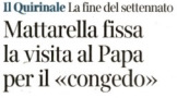 Già premuratosi a manifestare ad una scolaresca il desiderio di godersi il meritato “riposo” alla conclusione del settennato cominciato nel 2015, Mattarella si è affrettato adesso ad annunciare di avere fissato -come ha titolato in prima pagina il Corriere della Sera- la visita al Papa di “congedo” da presidente della Repubblica. Avverrà esattamente il 16 dicembre.